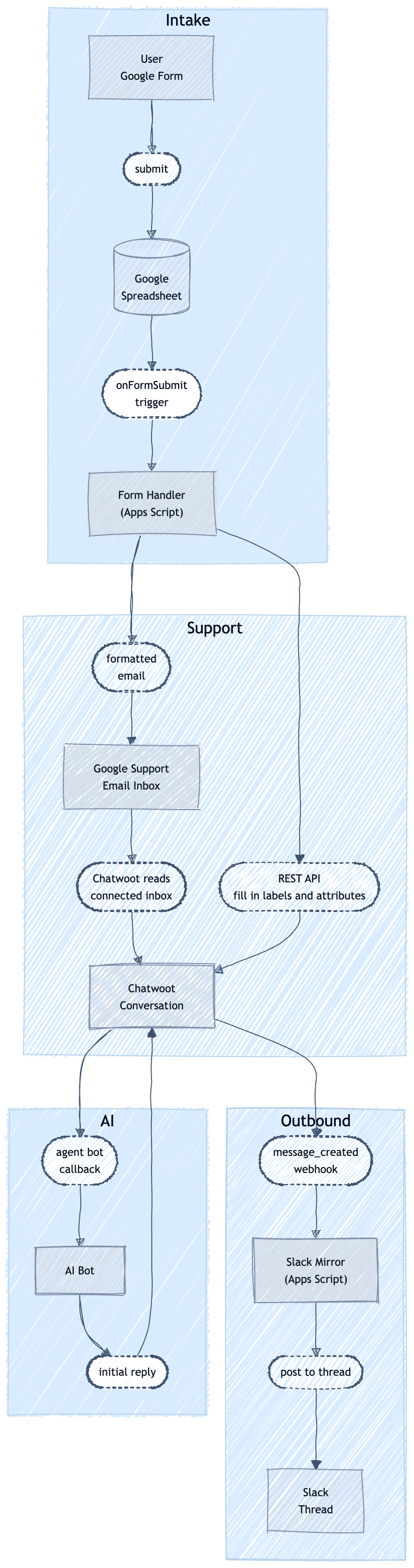 - Google Apps Script — handles connection to Chatwoot and Slack