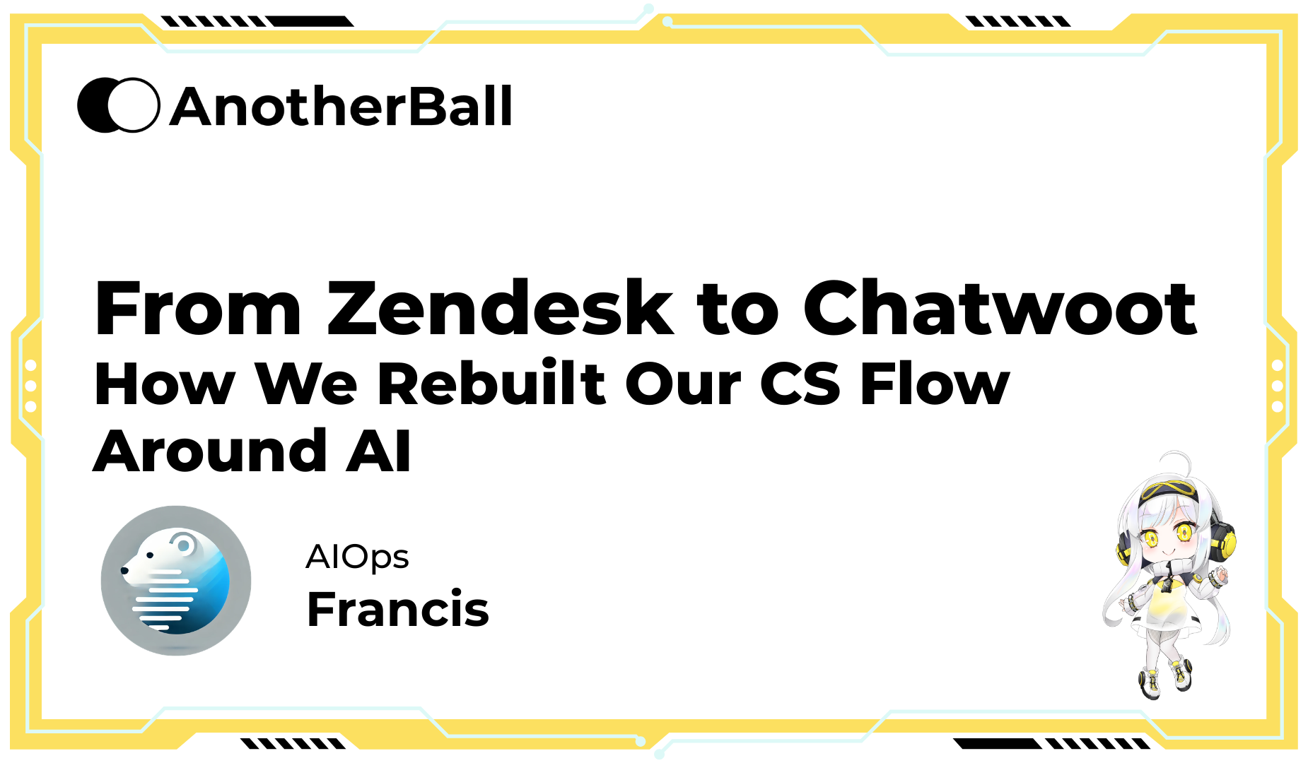 Hello! I’m Francis, in charge of AIOps at AnotherBall, where I work on applying AI to internal operations. This post is about how we rebuilt our CS flow around AI — bringing first reply time from 1,186 minutes down to under a minute and ending up with more insight into our users than ever.
