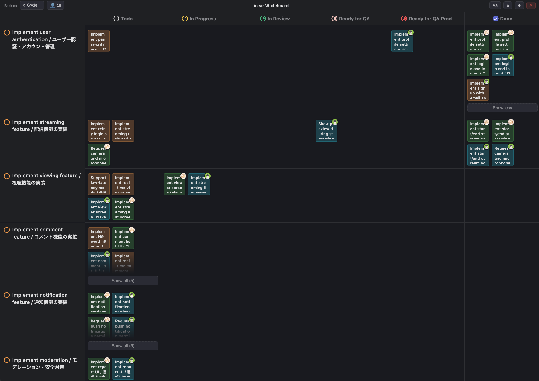 Our current Avvy team includes remote members working from different regions and countries, so a physical whiteboard isn’t practical. We use Linear for our kanban instead.