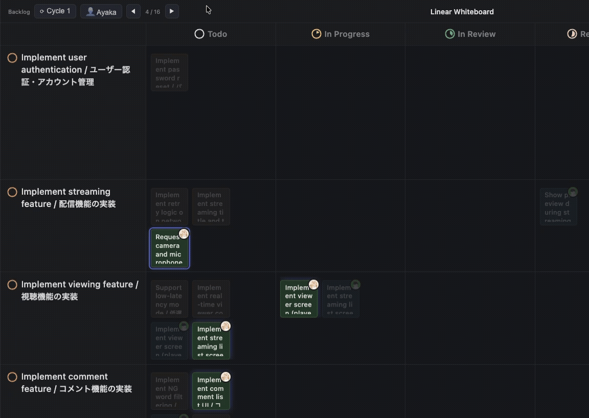 Linear has a Board View for card management, but after using it for a while, I noticed several gaps from the whiteboard experience.